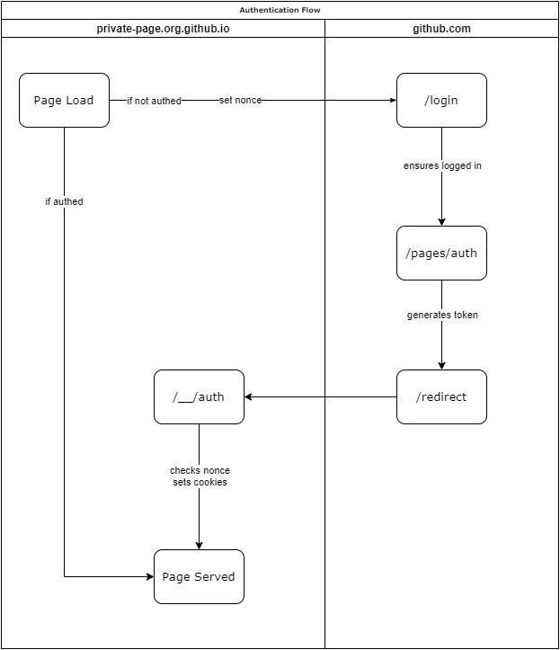 At the time of the report, GitHub’s private page authentication flow was: